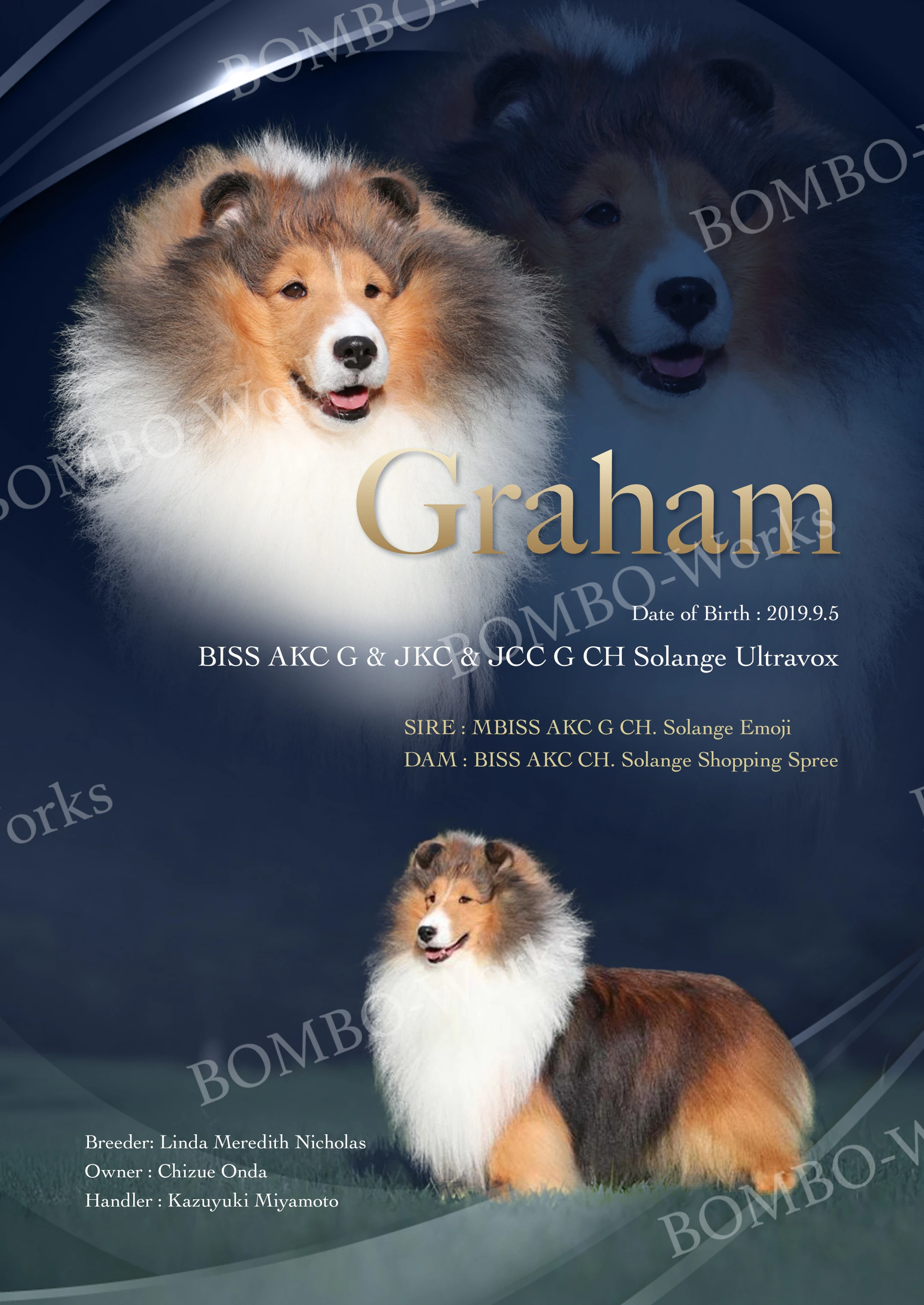 内容:写真(ケネルの雰囲気がわかるもの+各犬全身)、各犬コールネーム、各犬血統書名、遺伝子検査の結果、ショー成績、オーナー名、ブリーダー名、ハンドラー名 など