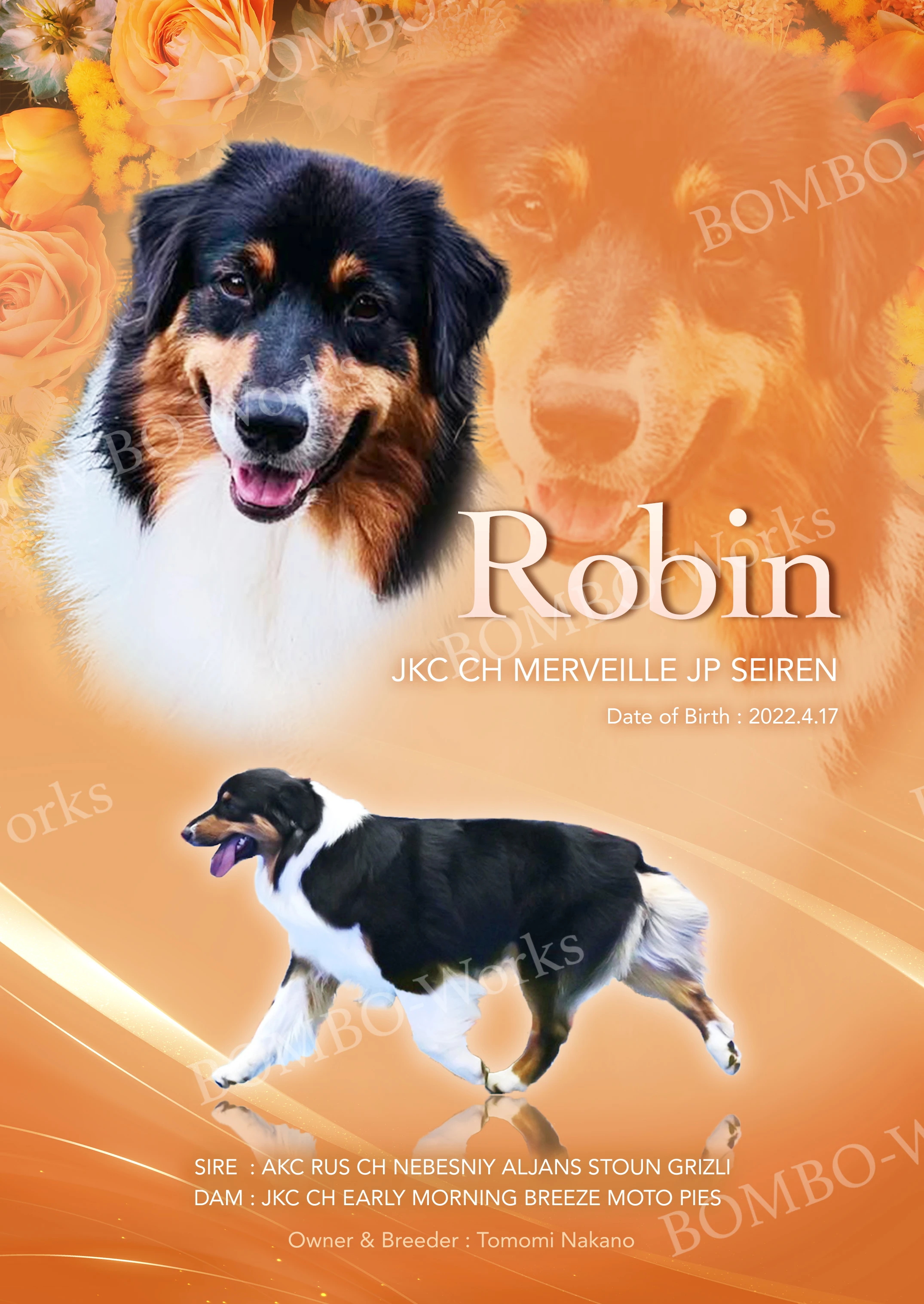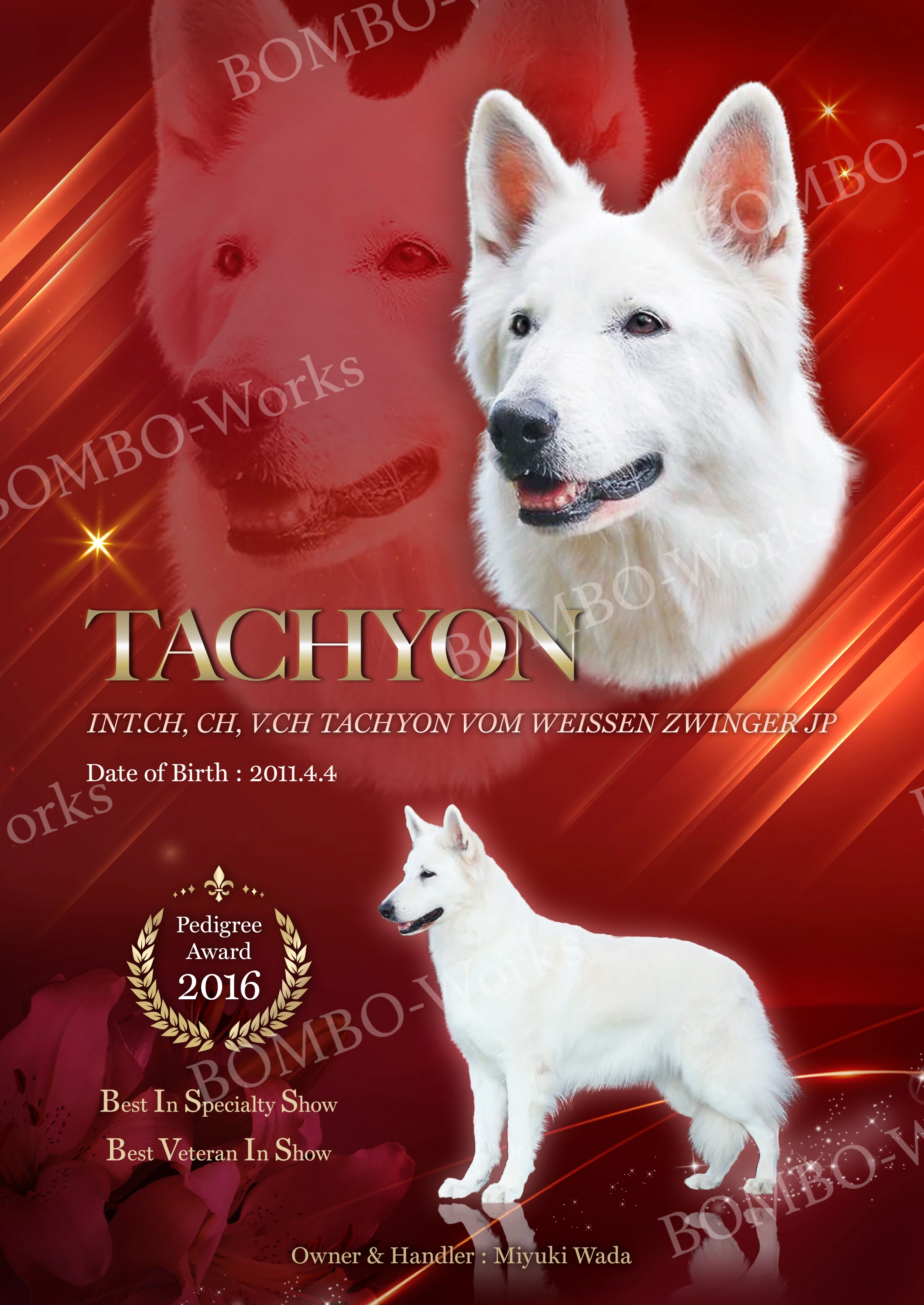 内容:写真(アップ+全体複数枚ずつ)、コールネーム、血統書名、生年月日、父犬・母犬の血統書名、遺伝子検査の結果、ショー成績、オーナー名、ブリーダー名、ハンドラー名 など